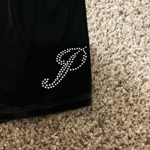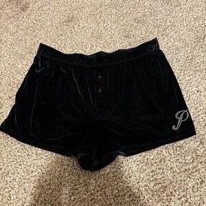 Elegant velvet shorts with high waist. Features button accents and logo detail. Photos look black - more green in color