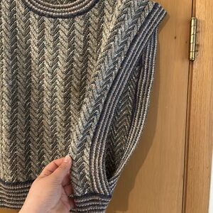 Stylish chevron pattern. Sleeveless design. Perfect for layering. Dark blue and gray with flecks of color that help it combine with a lot of different pieces. I am reposhing because I live in the south so it just wasn’t being worn enough, but I love the piece and how it’s open on the sides!