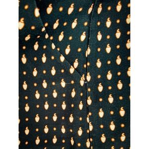 • Pattern: Black with micro-teardrop print and tropical fruit hem.