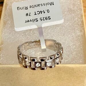 Moissanite And Sterling Silver Presidential or Watchband Style Band Ring | Sz 7