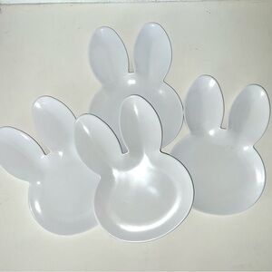 Set of 4 white bunny shaped plates. Perfect for Easter, themed parties, serving veggies ( I’m thinking carrots). Or just have fun and have lunch on these bunnies!