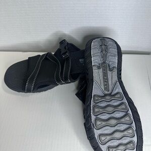 Comfortable black sandals with adjustable straps. Perfect for casual wear.