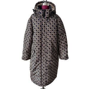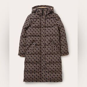 BODEN Skye Puffer Coat Tan Black Chain Geo size 12