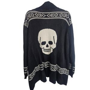 ModCloth Womens Skull Print Cardigan Sweater Open Front Size 1X Grunge Halloween