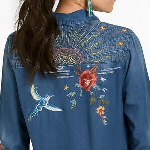 In the Johnny Was world this is considered the Holy Grail shirt. It is marginally hard to come by and absolutely spectacular considered their best piece ever in the denim line.