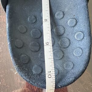 The Vionic Orthoheel Black Closed Toe Slide Sandals in size 9 are a stylish and comfortable option for women looking to add a touch of silver and blue bling to their outfit. The leather upper material and studded accents give these sandals a trendy and edgy look, perfect for a night out or a casual day look. The closed toe design and slide style make them easy to slip on and off, while providing support for all-day wear.