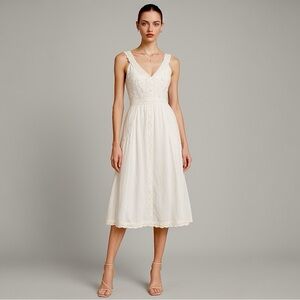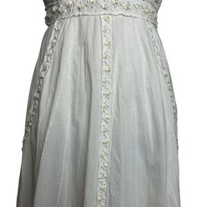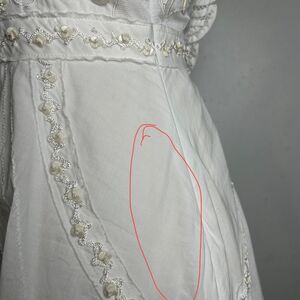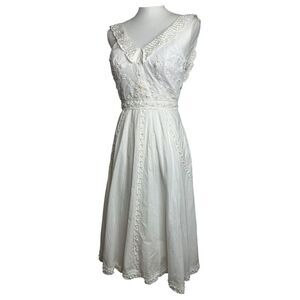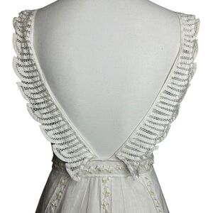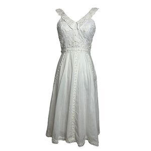 Info: Vintage Sue Wong Dress 4 Ivory Beaded Lace Trim Cottagecore Prairie Midi