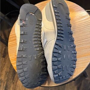 Classic off-white sneakers with signature New Balance logo. Comfortable and stylish for everyday wear.