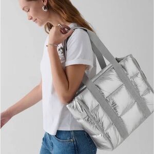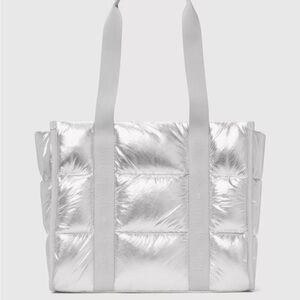 NWT. Shiny metallic tote with a puffy design. Stylish and spacious for everyday use. Signature Kate Spade elegance.