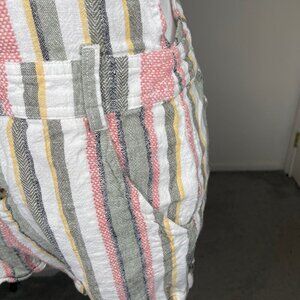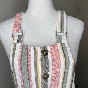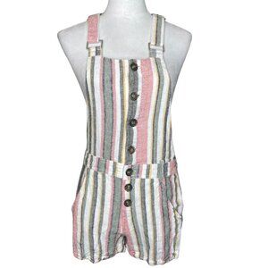 Indigo Rein Striped Linen Blend Shortall Overalls Romper - Size Medium