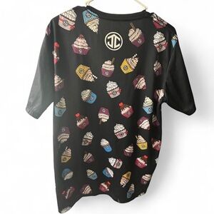 Birdies Black Tee with Colorful Cupcake Pattern