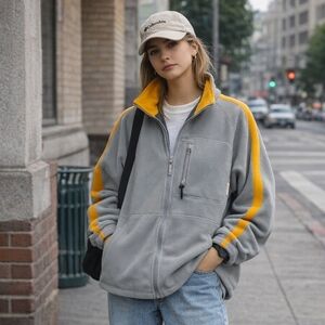 Midweight versatile fleece zip up jacket perfect for layering, pair with oversized JNCO jeans for a vintage 90s skater indie sleaze grunge look or wear for a normcore dad look.