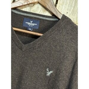 American Eagle Mens Medium Brown V Neck Sweater 100% Cotton Pullover M