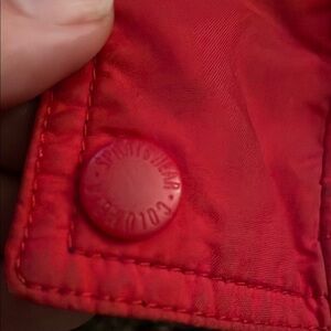 Stylish Columbia boys jacket. Bright red with black accents. Features 2 zip pockets, 2 open pockets and elastic waist.