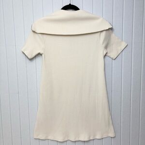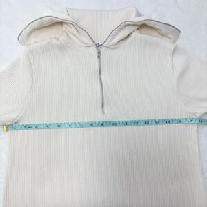 ZARA Sweater Dress Ivory Short Sleeves Quarter Zip Ribbed Knit Size Size M