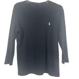 Ralph Lauren Sport Jersey Knit Top Pony Women's Large Black 100% Cotton Classic