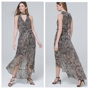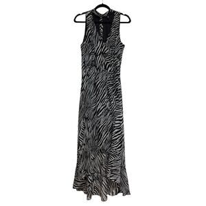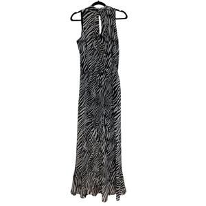 WHBM Abstract Zebra Black and Ecru High Low Maxi Dress - Size 8