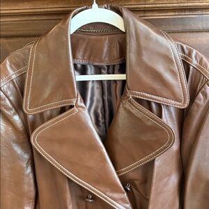 Vintage brown leather jacket coat statement lapel and stitching size 42 1970s