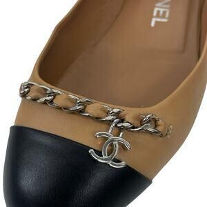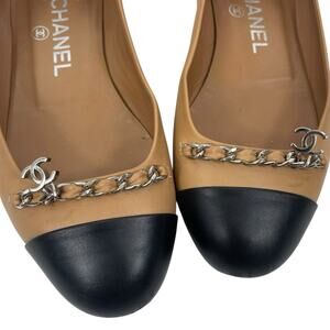 Chanel Interlocking CC Logo Chain Cap Toe Lambskin Ballerina Flat Size 36