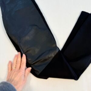 Tart Womens XS Black Lamb Leather Front Ponte Knit Leggings Ankle Zip Moto Pants