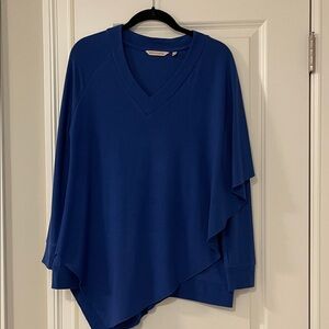 Petite Soft Surroundings Madeline royal blue V-neck top. Long sleeve tee with left side over cape. Extremely flattering, soft and comfortable. Great condition.