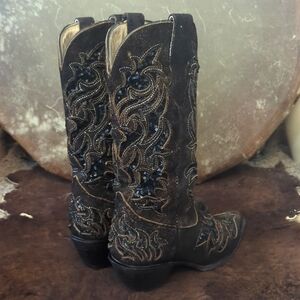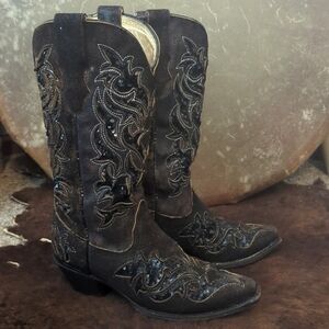CORRAL R1152 distressed dark brown leather & black sequins cowgirl boots sz 7