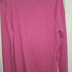 Vibrant pink sweater with ribbed design. Crew neck style. Ideal for casual wear.