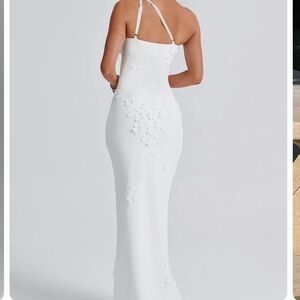 Step into elegance with this stunning one-shoulder white maxi dress, adorned with delicate floral details. Perfect for making a statement at any event.