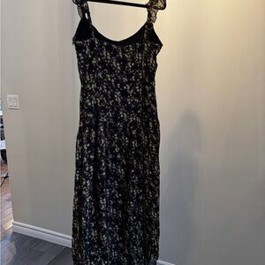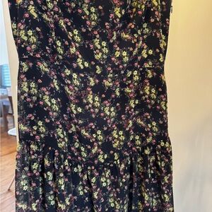 Chic maxi dress with a floral design. Features a black base with colorful flowers. Drop waist. New with tags.
