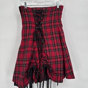 Spin Doctor Gothic Punk Tartan Skirt size S Red Black Y2K Ribbons Bows Corset