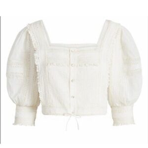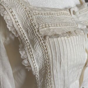 Polo Ivory cotton voile lace top, as seen on Dearly Bethany, size 8, excellent condition, zero flaws. Bottom has tie which is adjustable. Top is STUNNING I just need a smaller size 😞 please refer to measurements below.