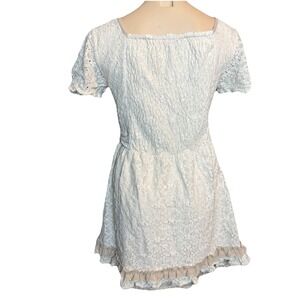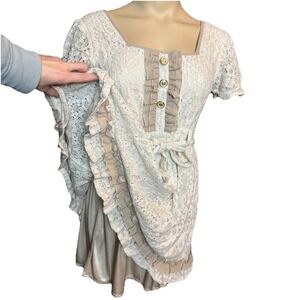 Axes Femme Cream Lace Dress – Layered Hem, square Neck Tie Waist Mori Girl