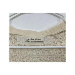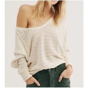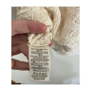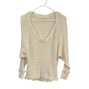 FREE PEOPLE Cream Knit Fringe V-Neck Thiens Hacci Dolman Sleeve Sweater Size Extra Small, Off Shoulder, Lightweight, 100% Cotton.