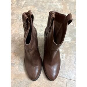 Jessica Simpson Brown Leather Western Ankle Boots Size 7M Stacked Heel