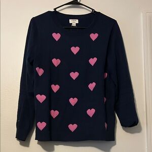 J Crew- Heart Patterned Navy and Pink Sweater, Size Medium