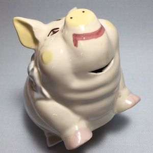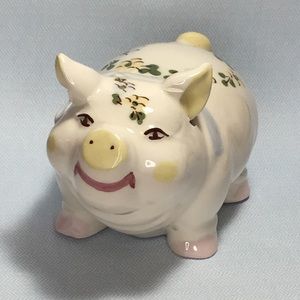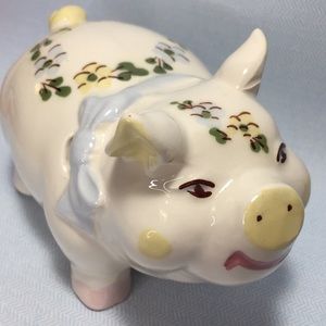 This sweet porcelain ceramic piggie is adorned with delicate yellow and blue hand-painted flowers
