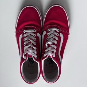 VANS Ward Skate Shoes in red. Size: M8/W9.5. Low-profile design. Flexible vulcanized construction. Original Waffle outsole for superior grip. Combination canvas and suede upper with fabric lining. Lace-up closure for a custom fit. Lightly cushioned insole with fabric lining. Vulcanized midsole with rubber sidewall trim detail. Vans® Original Waffle rubber outsole for grip and traction. Vans® branding details. Red and white. Great preowned condition. Throughly cleaned. Any wear shown in pics. See VANS size chart regarding and size conversions.