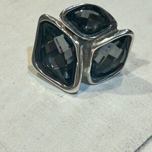 Uno de 50 Triple Smokey Gray Faceted Crystal Ring Sz 7/7.5 Silver Plated Alloy