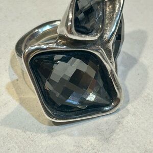 Elegant Handcrafted silver plated alloy ring featuring faceted smokey gray faceted crystals . Perfect for adding a touch of sophistication.