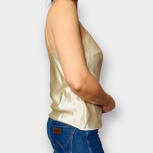 Y2K cream tank with spaghetti straps. Great foundation piece for layering or worn as a basic.