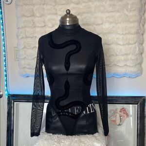 Elevate your style with this chic black top featuring a striking snake design. Perfect for a bold, fashion-forward look.