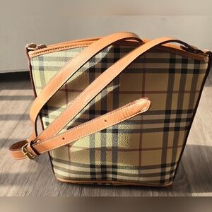 Braciano Leather Trim Plaid Classic British Preppy Crossbody Shoulder Beige Bag