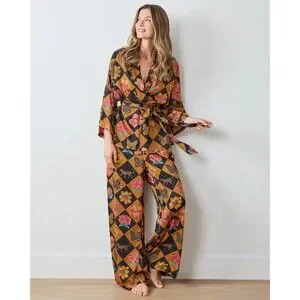 PRINTFRESH Botanical Checkerboard Wrap Pajama Set L