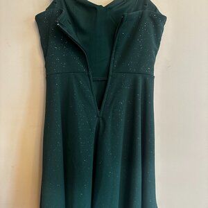 Beautiful emerald green skater dress with subtle allover sparkle. Perfect for holiday parties, winter formals, homecoming, or NYE.