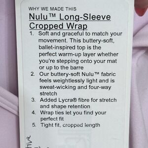 Lululemon Nulu Long-Sleeve Cropped Wrap Top Lavender Lux $78 Women's Size Large