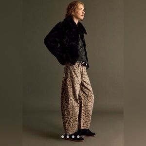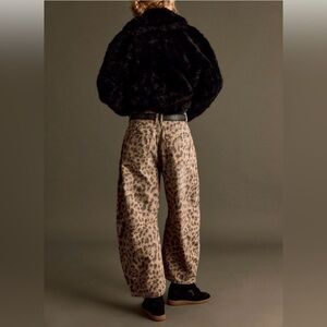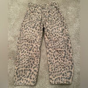 Stylish leopard print flare jeans. Perfect for a bold look. Comfortable and trendy.