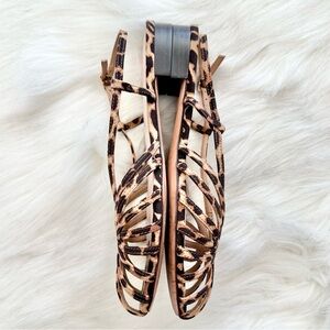 leopard print sandals, animal print shoes, strappy sandals, strappy flats, slingback sandals, buckle closure, woven strap sandals, cage sandals, square toe sandals, low heel sandals, flat sandals, summer sandals, spring shoes, resort wear shoes, vacation sandals, statement shoes, neutral print footwear, brown and black sandals, chic minimalist sandals, everyday sandals, comfortable flats, designer sandals, contemporary designer, luxury footwear, Loeffler Randall sandals, Loeffler Randall leopard, Loeffler Randall flats, authentic designer shoes, modern feminine style, capsule wardrobe shoes