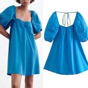 NWT Zara Blue Puff Sleeve Blue A-Line Mini Dress Sz M