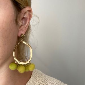 Elegant gold dangle earrings featuring vibrant green accents. Perfect for adding a pop of color to any outfit.