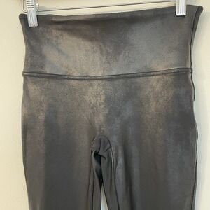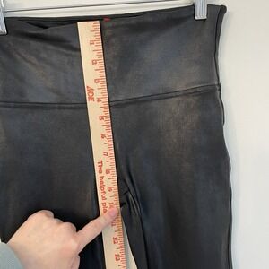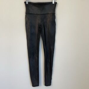 SPANX High Waisted Faux Leather Leggings M Black Pebbled Texture Yoga Athleisure